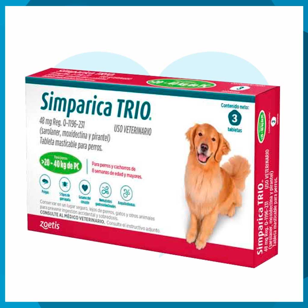 Simparica TRIO 48mg 20 - 40kg 3 Tabletas