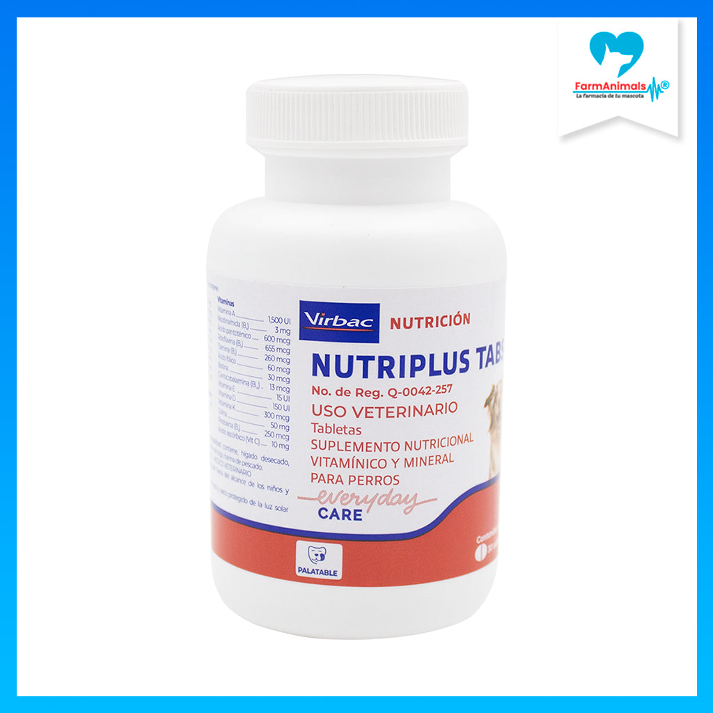 Suplemento vitamínico y mineral para perros en prácticas tabletas palatables.